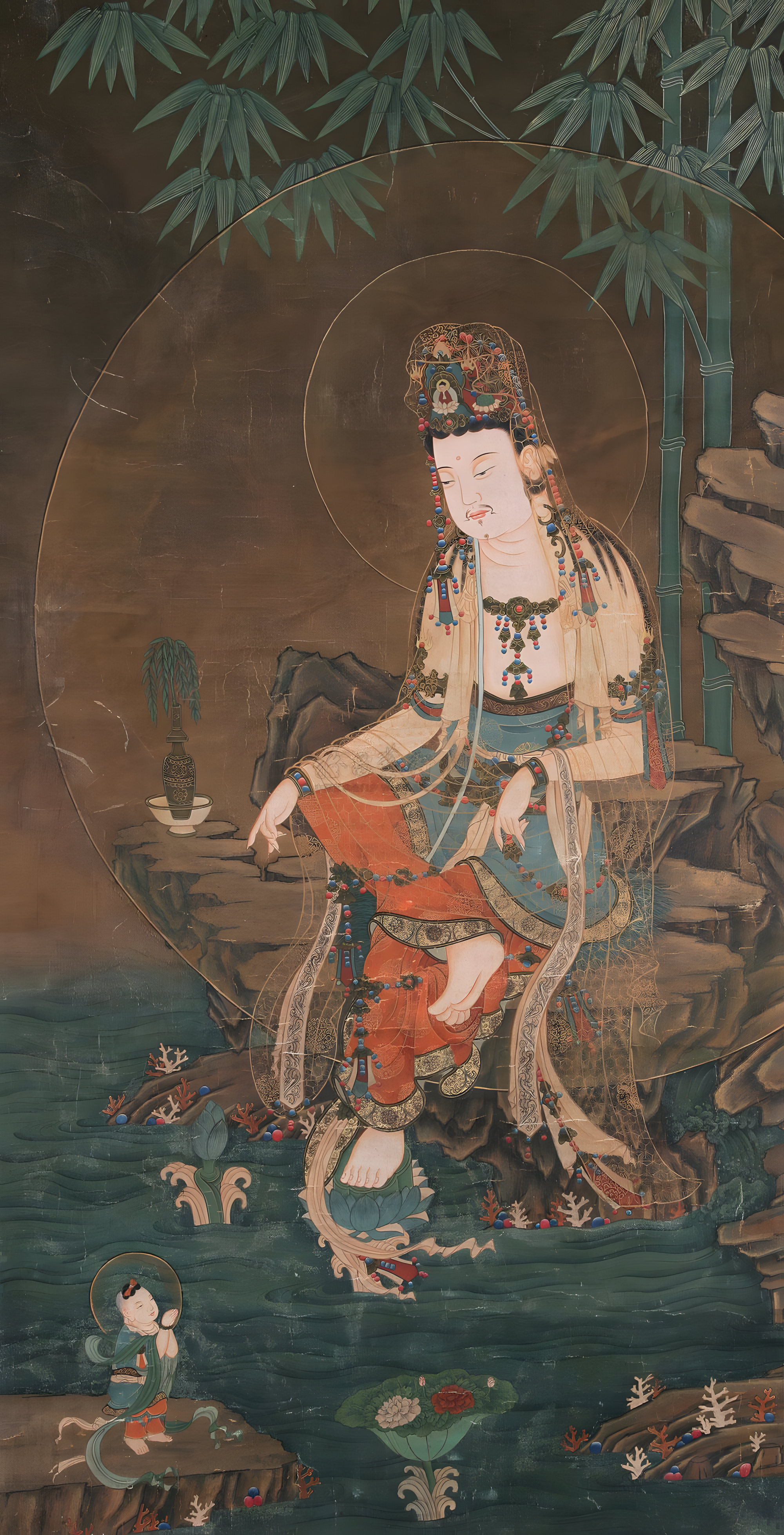童子拜观音 立轴 设色绢本_2000x3914_meet.fo