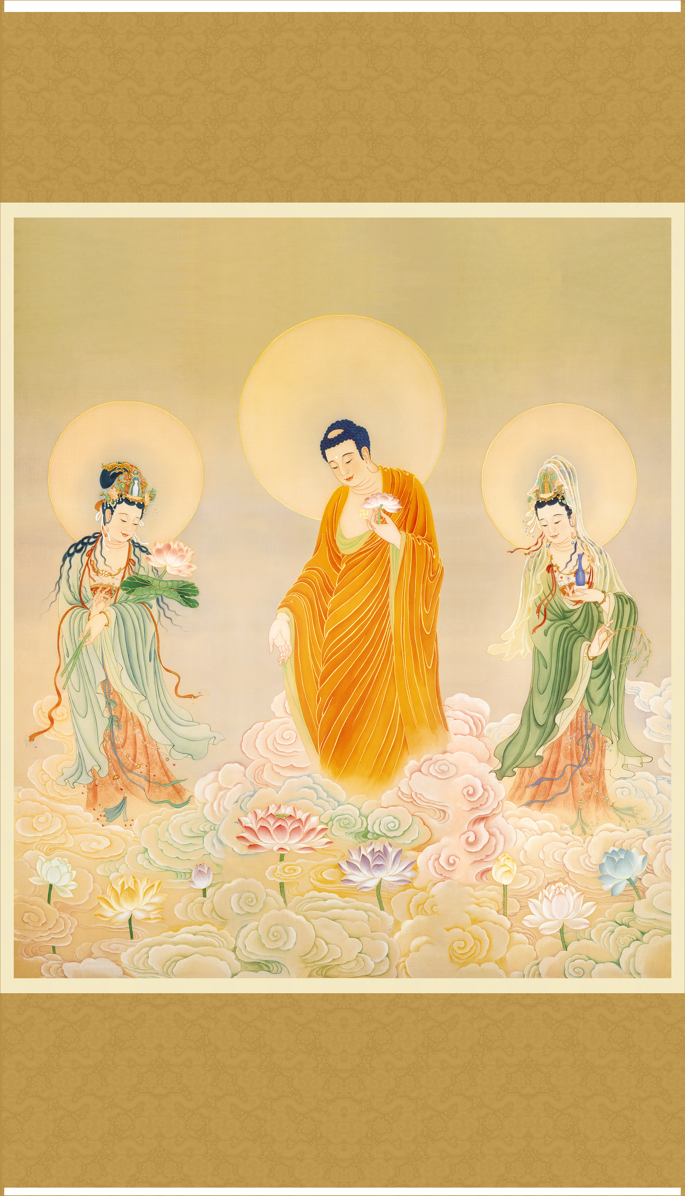 西方三圣像(彩云佛像) 【大图编号-A1009】(卷轴) 138_89cm
