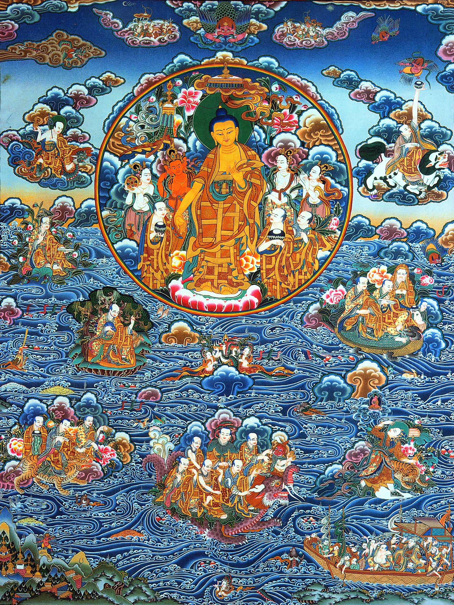 西藏唐卡.3.释迦牟尼与罗汉渡海图1