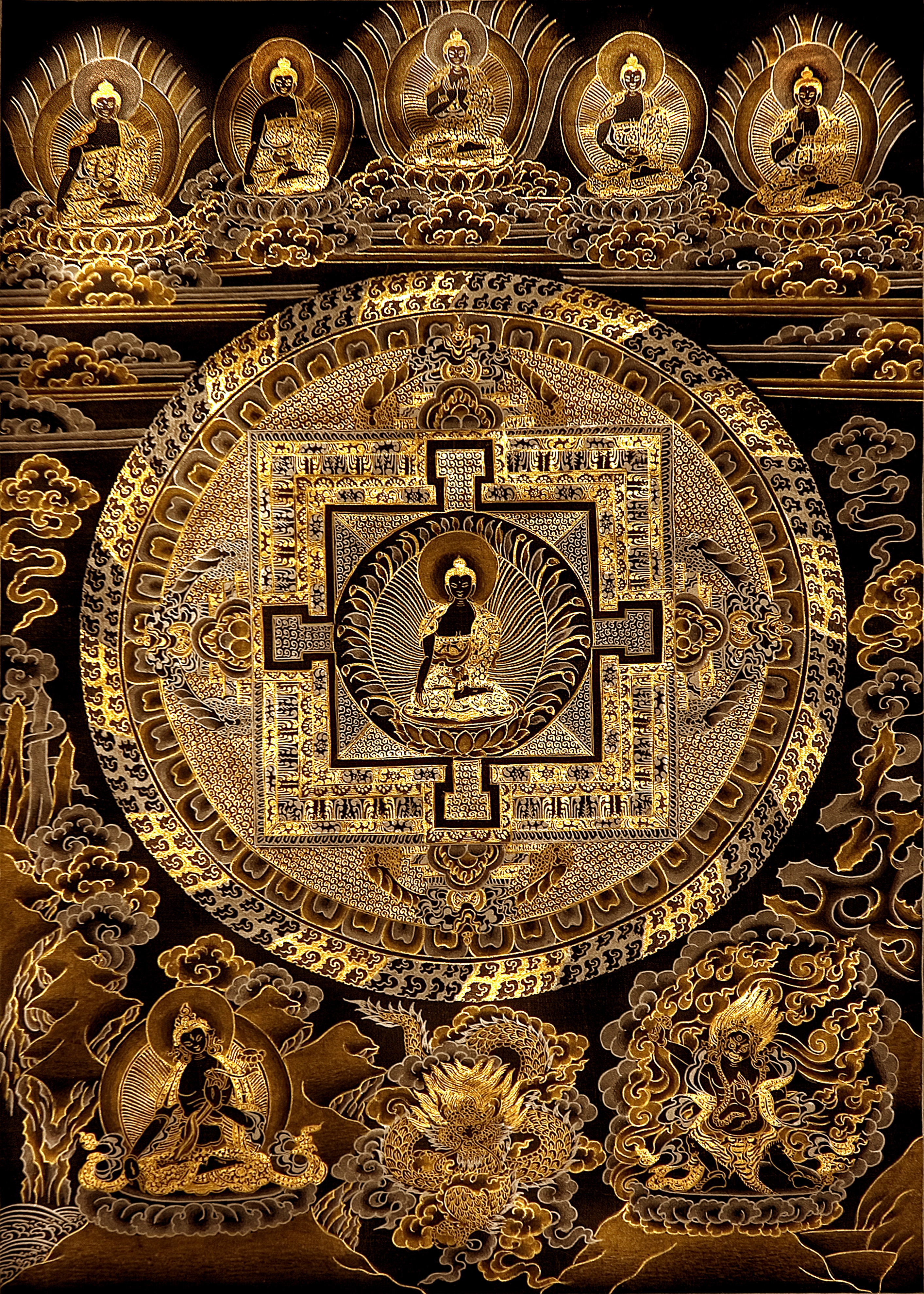 西藏唐卡.3.释迦牟尼佛坛城.金色唐卡_【大图编号-A1842】