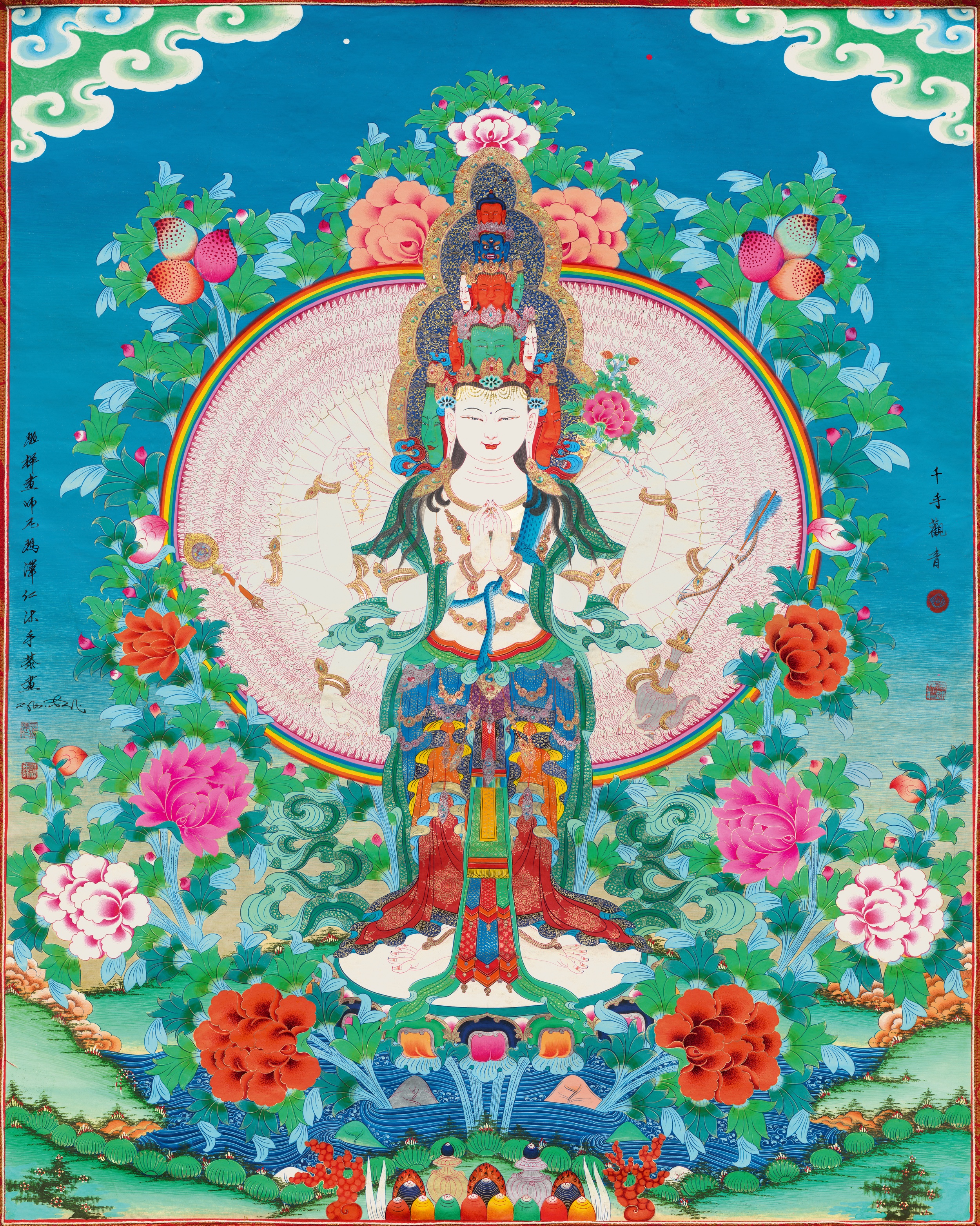 西藏唐卡_尼玛泽仁-千手观音绢本100X80_【大图编号-A1689】_2500x3127_meet.fo