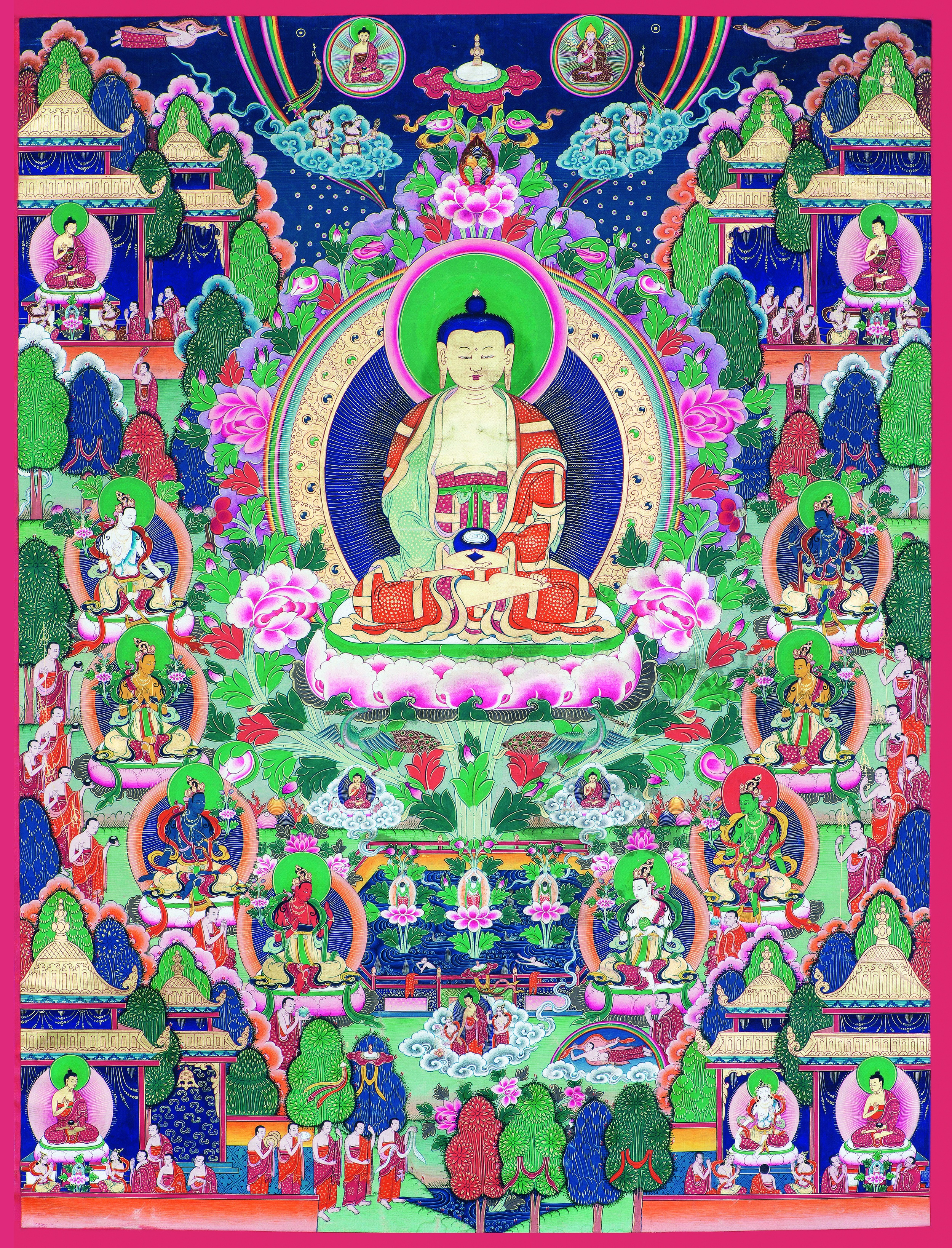西藏唐卡_西方极乐净土_青海绢本69x53.5_【大图编号-A1697】_2500x3277_meet.fo