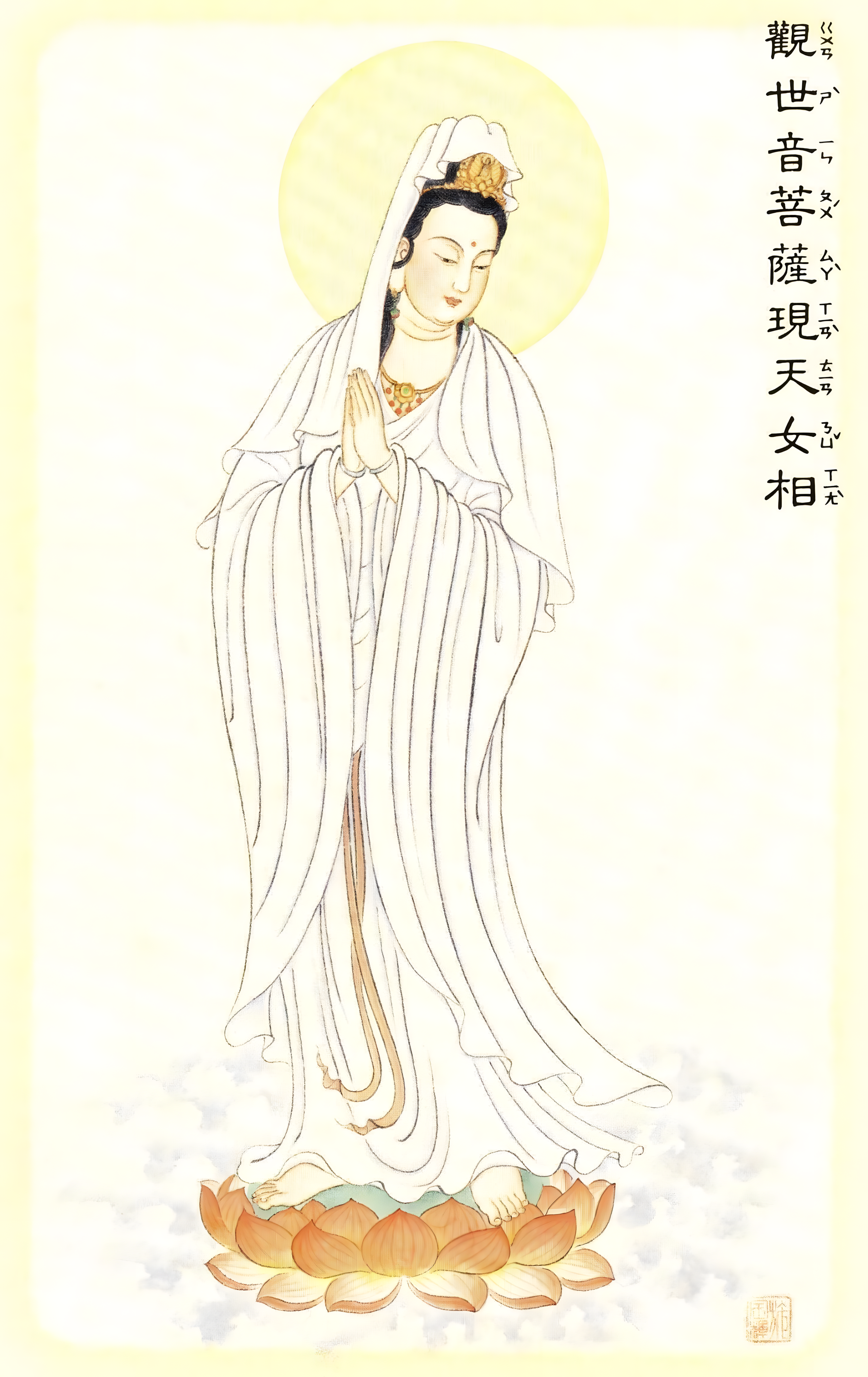 《普门品》中,菩萨示现三十三相为法界众生说法,其中有男有女。