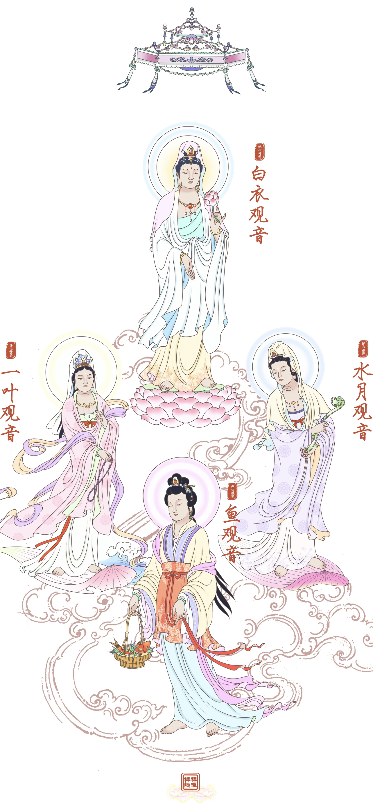 观音菩萨:白衣观音.一叶观音.水月观音.鱼篮观音_1284x2778_meet.fo