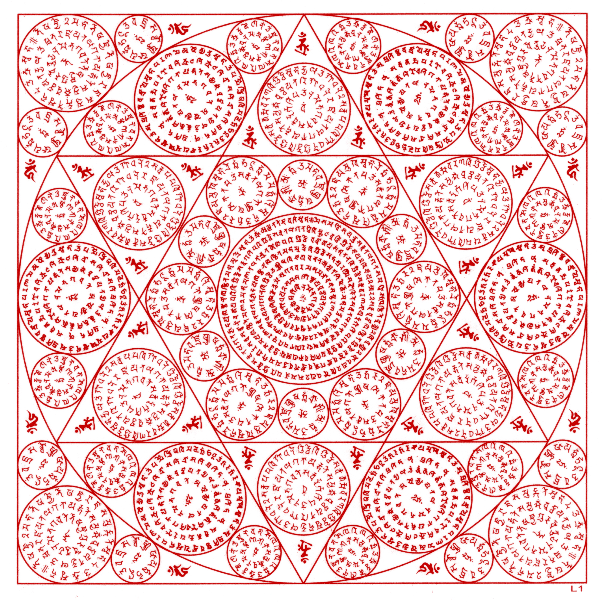 ……(此咒轮组前16张正方形咒轮共计32面,一千多种殊胜密咒;