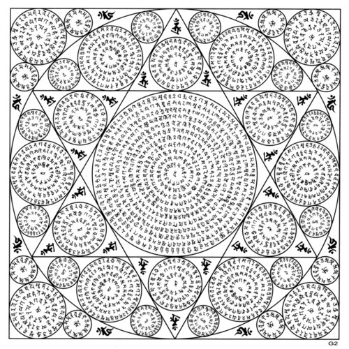 ……(此咒轮组前16张正方形咒轮共计32面,一千多种殊胜密咒;
