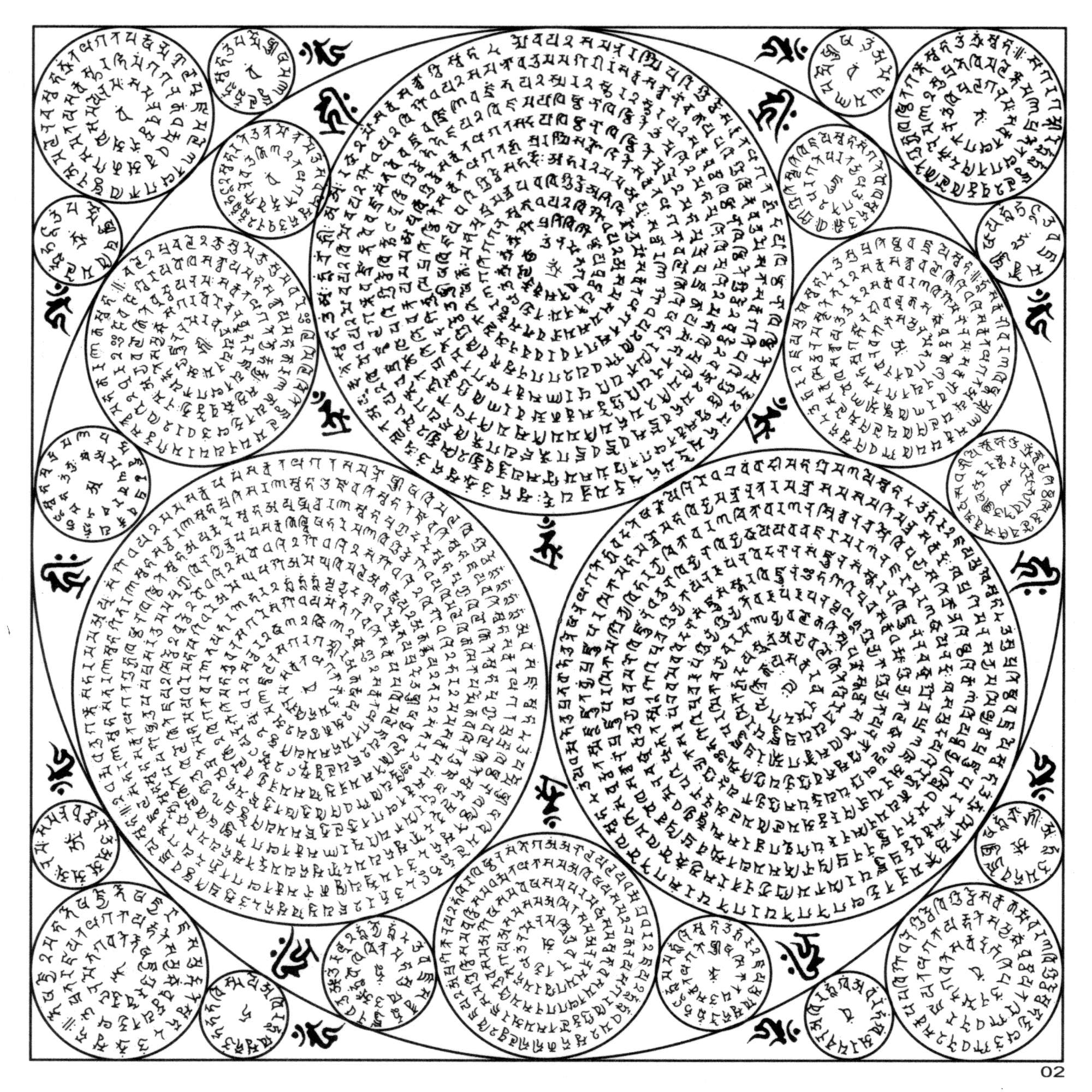 ……(此咒轮组前16张正方形咒轮共计32面,一千多种殊胜密咒;