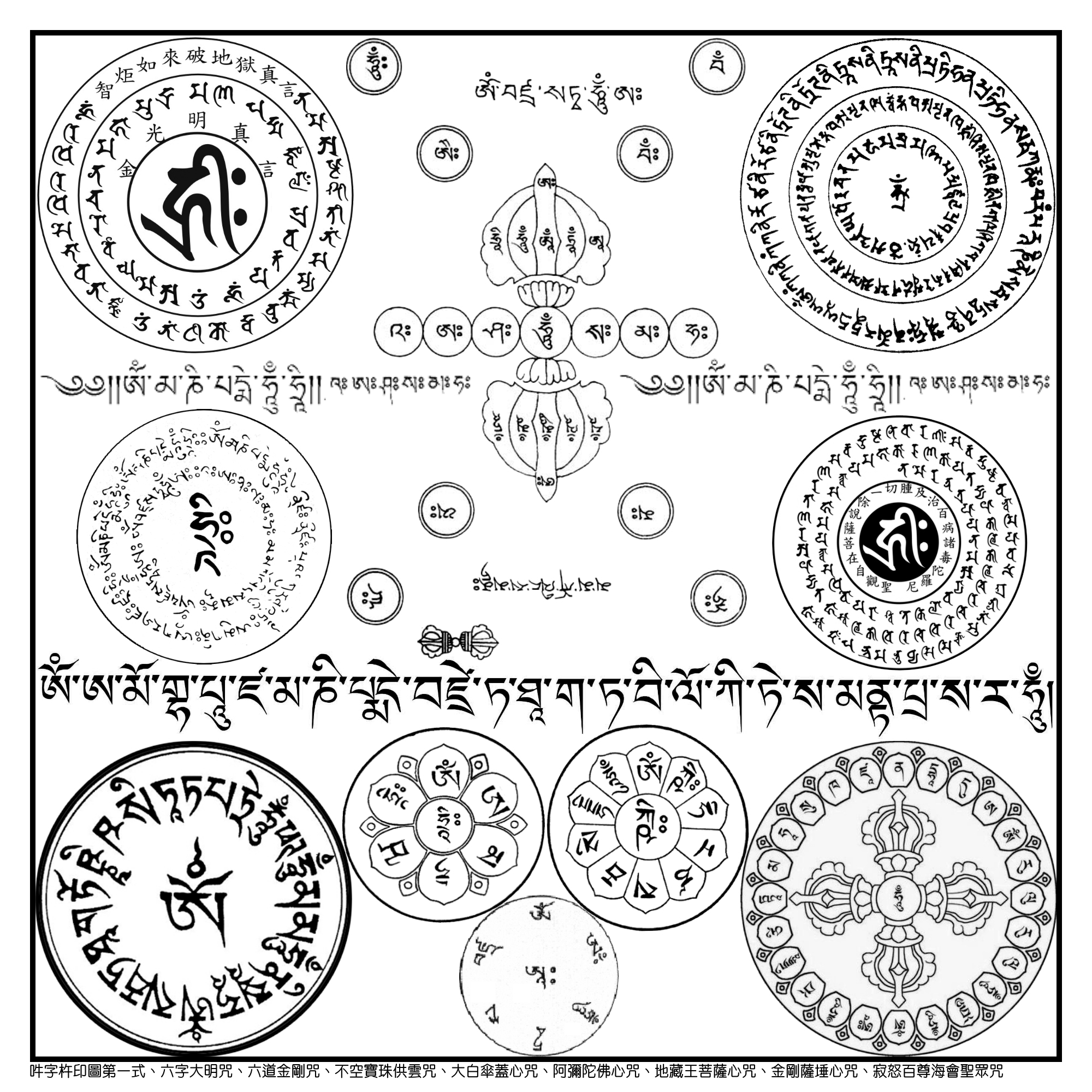 ……(此咒轮组前16张正方形咒轮共计32面,一千多种殊胜密咒;