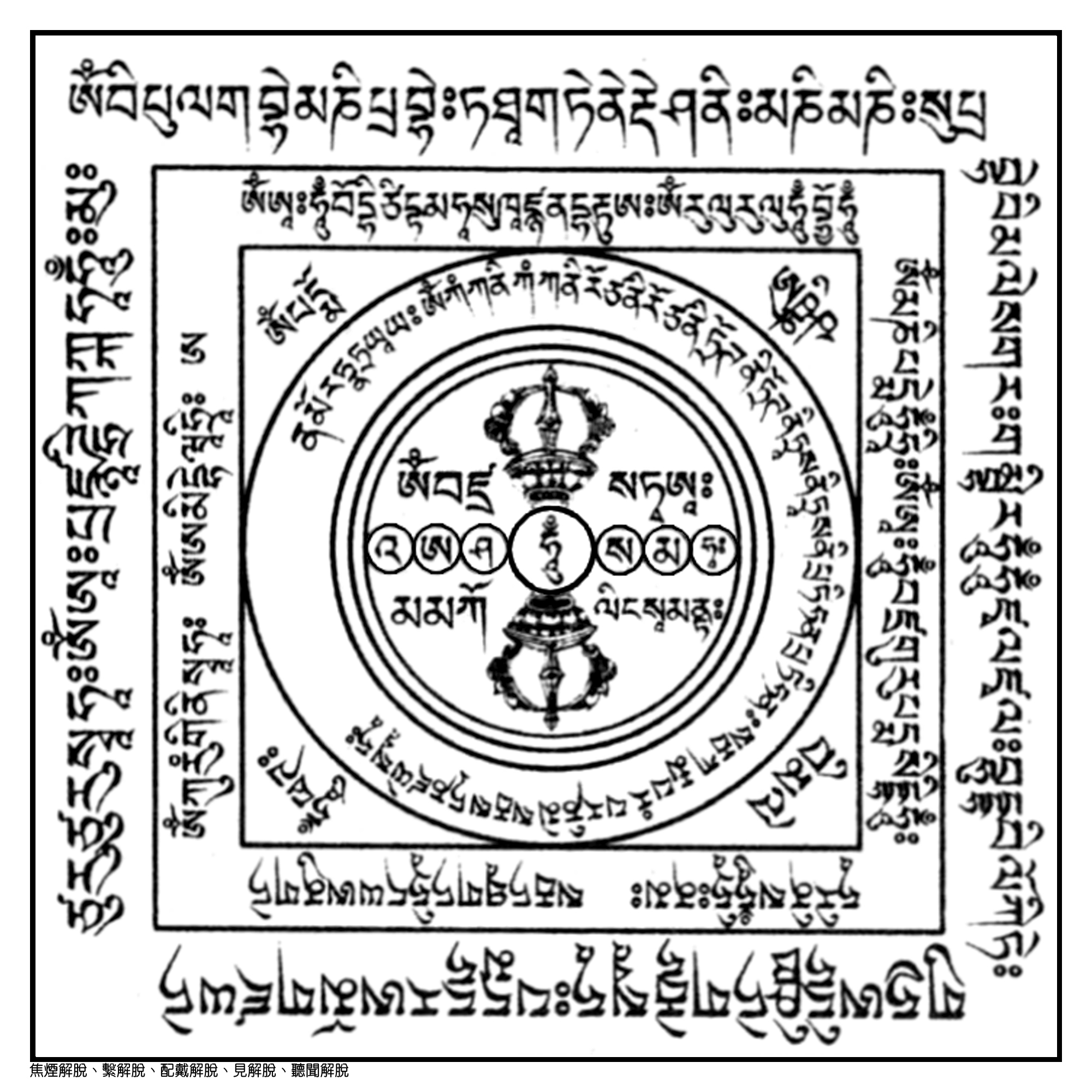 「挂带解脱轮」的来源出自旧译佛经-伏藏中文武百尊挂带解脱的咒轮,