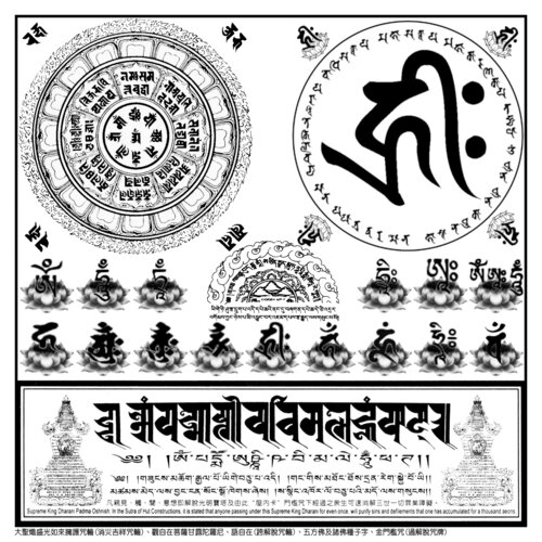 ……(此咒轮组前16张正方形咒轮共计32面,一千多种殊胜密咒;