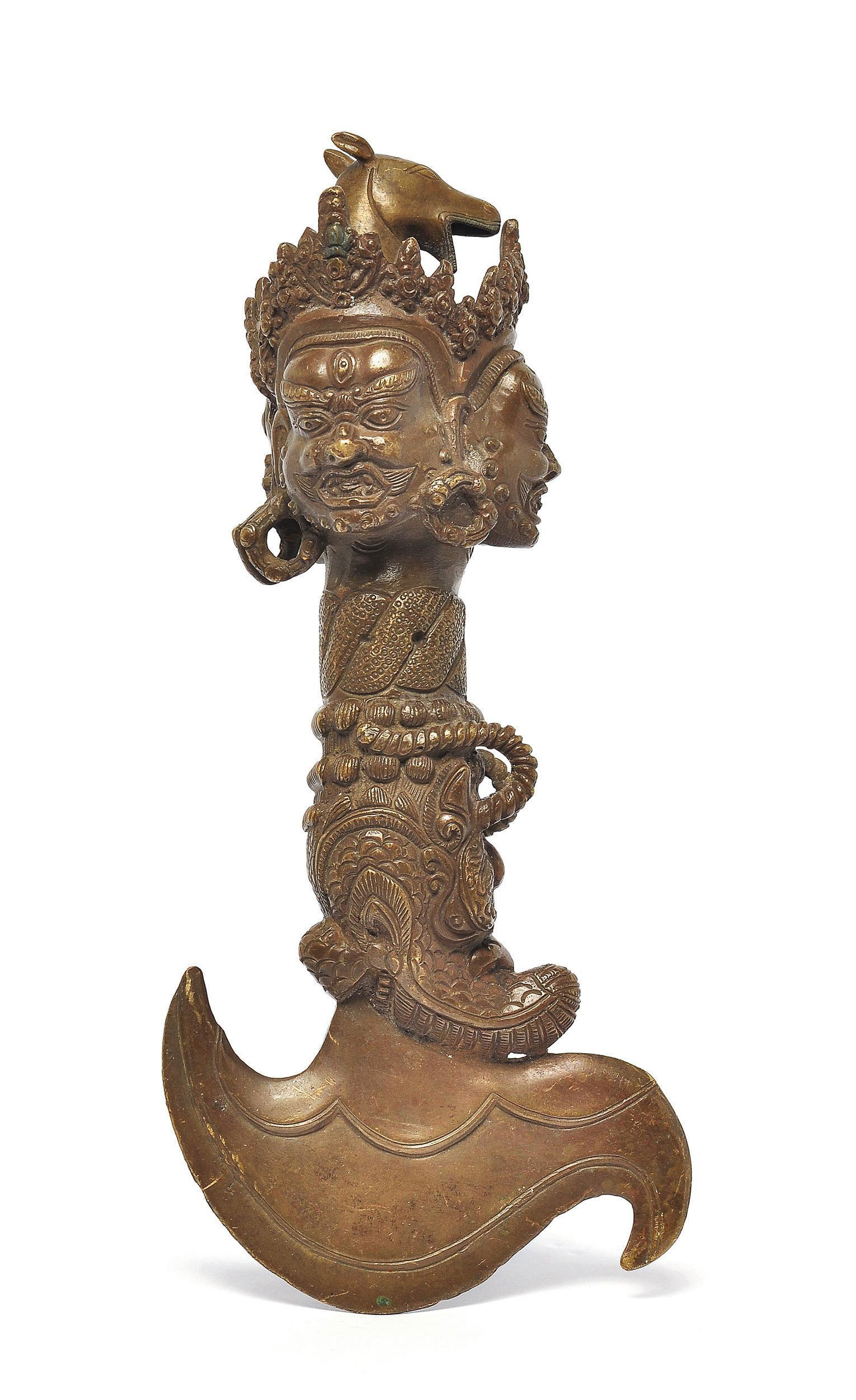 金刚钺刀(Vajra Tomahawk[Tibetan:Trigug]) 是藏传佛教常见的法器,表神圣佛法不容侵犯,卫护佛法之心,如藏传佛教的虎面空行母、狮面空行母、大威德金刚的造像都有手臂持钺刀。