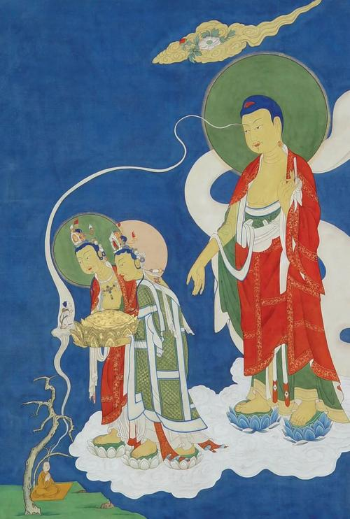 阿弥陀佛与菩萨手持莲台接引图-2_500x742_meet.fo