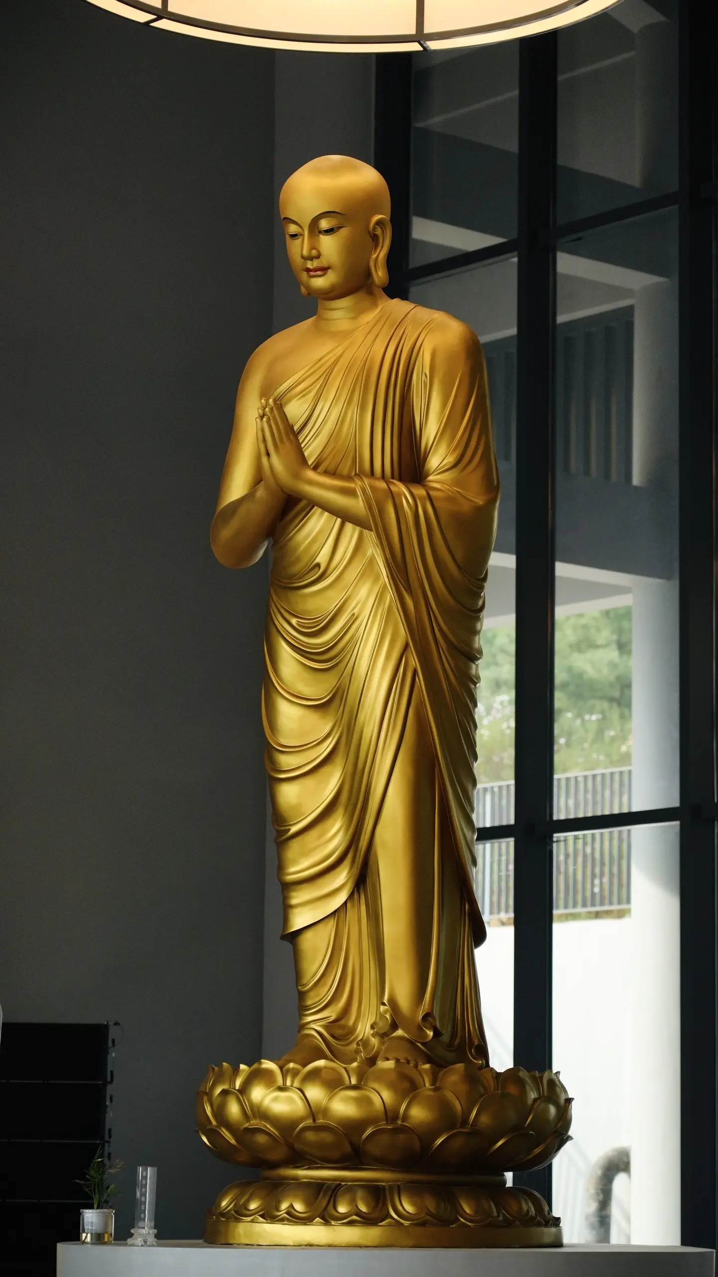 阿难尊者。佛的十大弟子之一,与大迦叶尊者同为佛陀左右胁侍。原是佛陀堂弟,随佛出家,于当时僧团中年纪最轻,聪明多闻,记忆最强,仪容俊秀庄严,令见者欢喜。文殊菩萨曾赞:“相如秋满月,眼似青莲华,佛法如大海,流入阿难心。”作为侍者二十七年跟随佛陀到各地传道,谨记佛陀的一言一语, 因此被称为“多闻第一”。佛灭后第一结集就是由阿难诵出,包括《长阿含经》等众多经藏,对佛法的流传与贡献无可替代。佛经中出现的“如是我闻”,“我”即指阿难。后世尊其为“二祖”,大迦叶逝世后,继承迦叶率领徒众宏扬佛法。