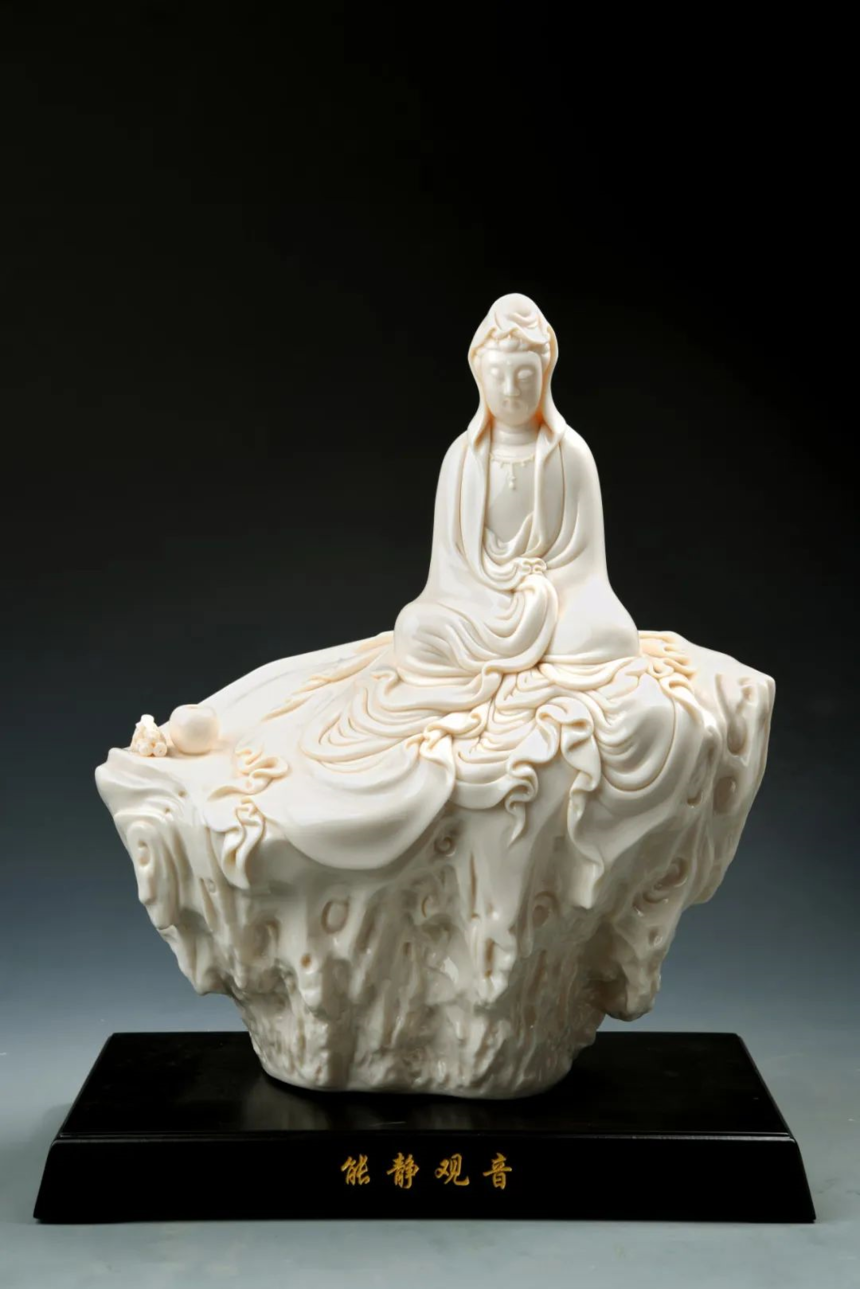 四十多年坚守初心,积极致力于传承何派技艺的中国工艺美术大师、中国陶瓷艺术大师、国家非遗“德化瓷烧制技艺“代表性传承人陈明良,从2017年起即开始进行三十三观音圣像的艺术创作工作,前后历时将近两年,于2019年大功告成。他根据观音在佛教中所具有的佛法无边、法相莫测的特殊地位和服饰衣冠上的不同特点,着力塑造了形态有殊、神态迥异的各类观音形象。诸如静目颔首的盘膝观音,潇洒悠闲的游戏观音,恬静自若的一叶观音等等。这组观音塑像质地莹润无瑕,神态端庄安详,制作优美精良,以气韵取胜,以传神动人。陈明良大师以丰富的世俗生活为根基、以现实人物为蓝本,对于观音五官和手足的细部,对于头颈和躯体的整体协调关系等的刻划均细致入为微,极具法度。且其胎体滑润致密、洁白无瑕,作品间流露的艺术美感丰富盎然而有佛家悲天悯人之态,加之猪油白釉质的凝脂冻玉般的肌理美感,相映合璧,使观音塑像饱浸极高的艺术品味和审美格调。这组三十三观音圣像,堪称陈明良大师近年来少有的大型精品系列...
