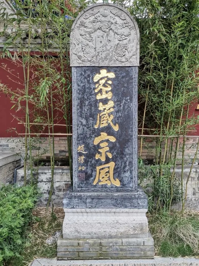 这通石碑上书“密藏宗风”,由中国佛教协会会长赵朴初居士书写。大兴善寺山门上也有“密藏宗风”的牌匾,说明广仁寺和大兴善寺同为密宗寺庙,不同之处是广仁寺是藏传佛教寺庙,大兴善寺是汉传佛教寺庙,同为密宗在不同区域产生的不同宗派。