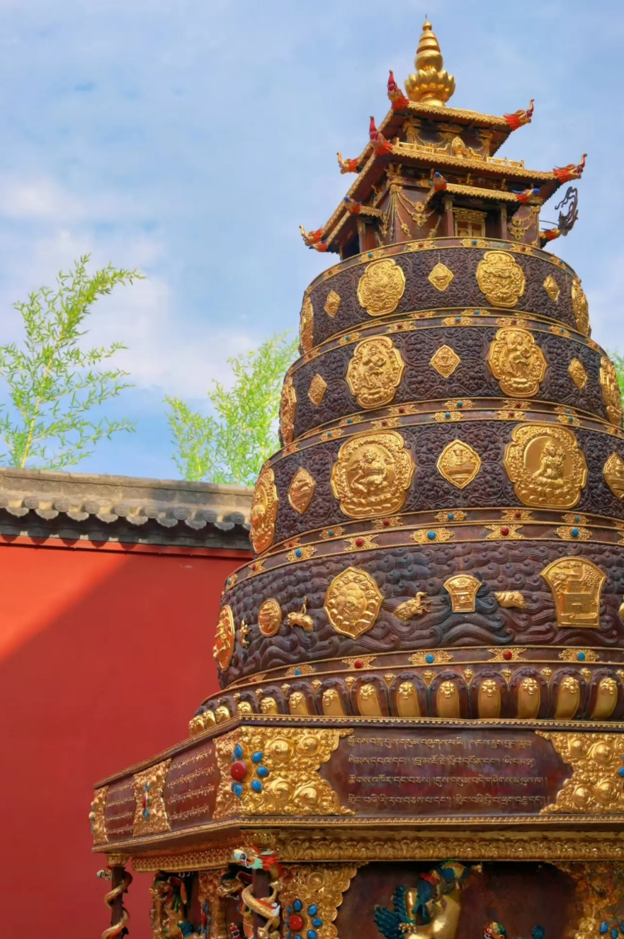 广仁寺山门外两侧矗立有整齐成一线的八座如来宝塔,以赞颂释迦牟尼一生八大功德。八塔建于2008年,风格迥异,包含不同含义,采用上等汉白玉,雕刻手法精细,总高4.6米。站在广仁寺前的广场,蓝、白、红、黄彩色的风幡在蓝天之下迎风飘展,仿佛置身在西藏的雪域高原。