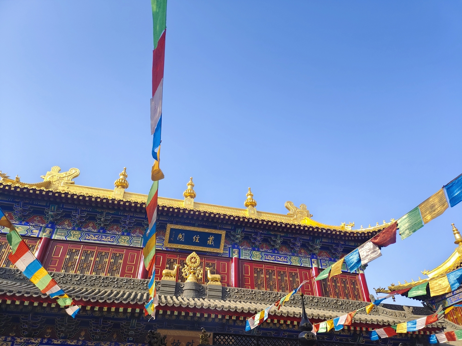 广仁寺山门外两侧矗立有整齐成一线的八座如来宝塔,以赞颂释迦牟尼一生八大功德。八塔建于2008年,风格迥异,包含不同含义,采用上等汉白玉,雕刻手法精细,总高4.6米。站在广仁寺前的广场,蓝、白、红、黄彩色的风幡在蓝天之下迎风飘展,仿佛置身在西藏的雪域高原。