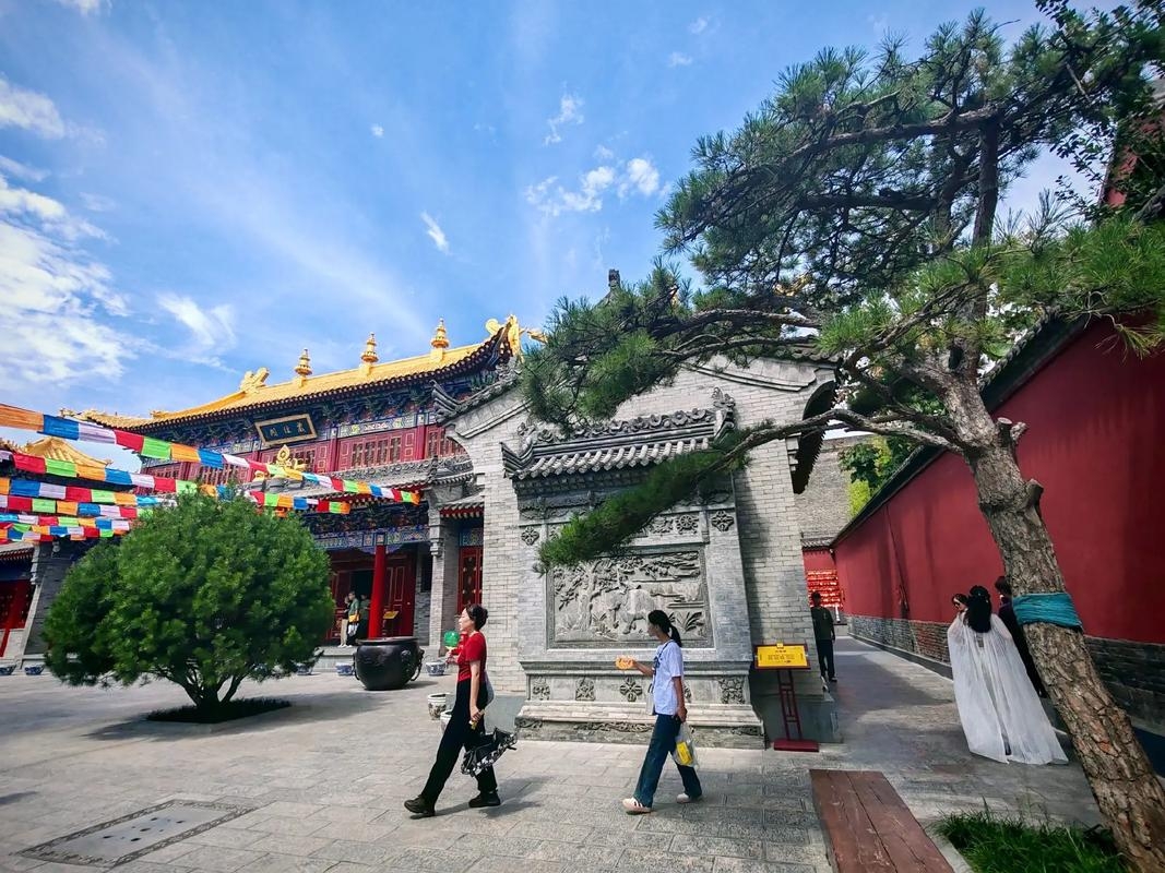 广仁寺山门外两侧矗立有整齐成一线的八座如来宝塔,以赞颂释迦牟尼一生八大功德。八塔建于2008年,风格迥异,包含不同含义,采用上等汉白玉,雕刻手法精细,总高4.6米。站在广仁寺前的广场,蓝、白、红、黄彩色的风幡在蓝天之下迎风飘展,仿佛置身在西藏的雪域高原。