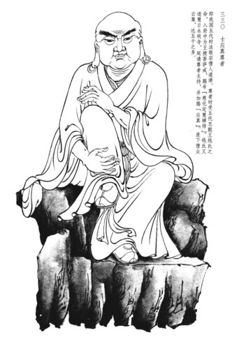 第一类是历史上确有其人其事,比如其中有当初佛教初创时期的释迦牟尼弟子,也有为佛教事业作出过贡献的、各时代的高僧、护法王、居士等等,有印度的,有中国的,也有朝鲜的。他们理应被后人列入五百罗汉名单之列受到供养。
