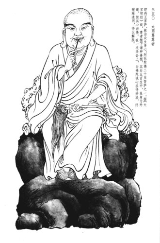 第二类属于佛教传说中虚构的人物,如生于某劫、某一世界,具有超凡的智慧和德行,是宗教化的偶像,我们无法断定他们是否有历史原型,即使有其事迹大部分都被神化了。这一类尊者主要包括罗汉、菩萨、佛的应化身、前世身。